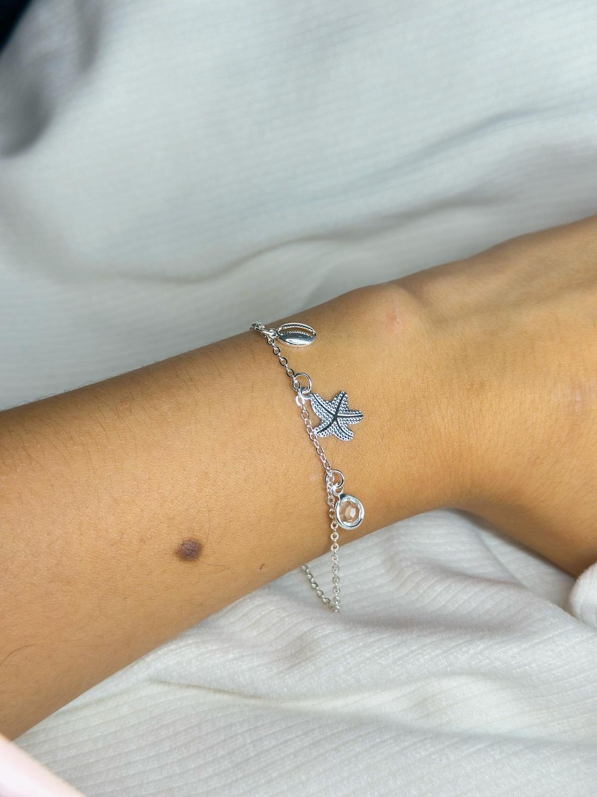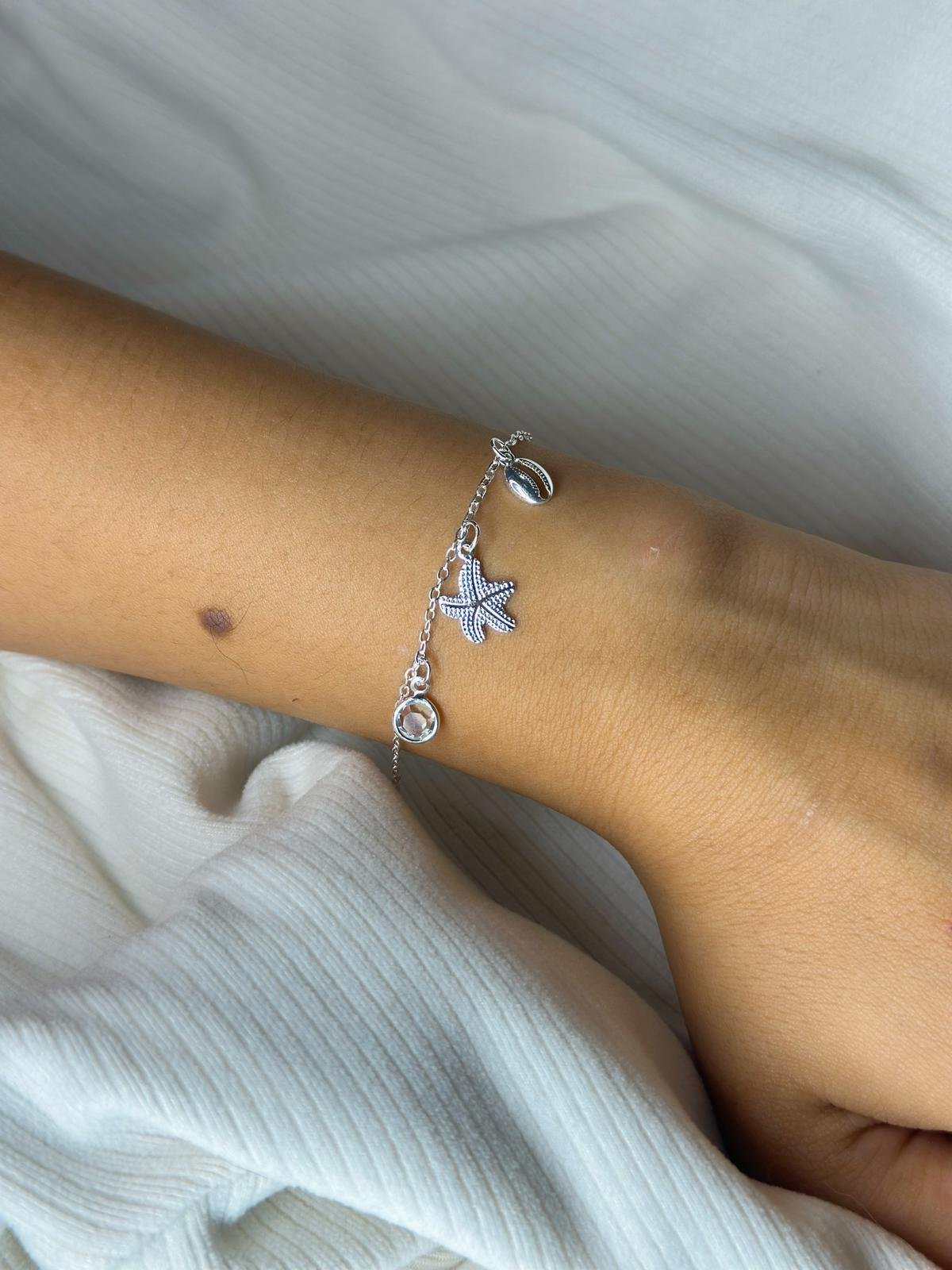 Com um design delicado que une conchinhas e estrela-do-mar, a pulseira mar é a escolha perfeita para quem ama o estilo leve e praiano. Uma semijóia que transmite frescor, boas vibrações e a energia do mar em cada detalhe.