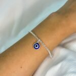 Leve com você um símbolo de boas energias e proteção com a Pulseira Olho Grego. Conhecido por afastar as energias negativas e atrair sorte, o olho grego é um amuleto clássico que une significado e beleza.Esta peça é banhada em prata com verniz catoforético, garantindo maior durabilidade, brilho e resistência ao desgaste. Um design delicado, moderno e cheio de intenção, perfeita para usar sozinha ou em mix com outras pulseiras.